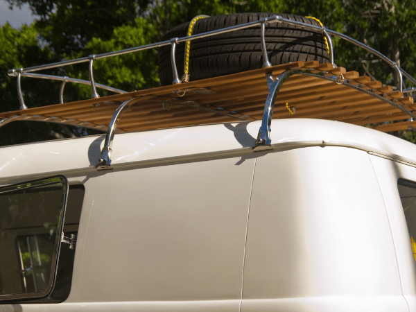 Do pierwszej generacji Transportera polecamy bagażnik dachowy VW marki Vintage Speed. To reprodukcja legendarnych bagażników z czasów młodości Transportera. Została wykonana z metalowej ramy odpornej na działanie warunków atmosferycznych oraz drewnianych, impregnowanych listew. Dzięki zastosowaniu opływowego kształtu rama nie wpływa negatywnie na opór powietrza i stabilizację umieszczonego na niej ładunku.