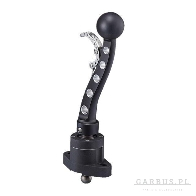 Dźwignia zmiany biegów o ergonomicznym kształcie z nawierceniami, obniżającymi jej masę i skokiem krótszym o 40%. System spustowo-cięgnowy zapewnia bezpieczeństwo wrzucania biegu wstecznego, a odpowiednio dostosowana stopka umożliwia dokładne ustawienie podstawy dźwigni. Istnieje również możliwość demontażu i wymiany gałki (gwint M8 x 1,25). W zestawie znajduje się drążek zmiany biegów, stopka oraz niezbędne elementy montażowe.
