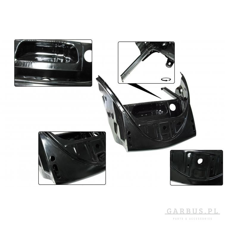 Komora koła zapasowego w VW Garbusach 1200, 1300 i 1500 jest często bardzo zardzewiała. Jeśli nadal jest to możliwe, można wymienić pojedyncze części blaszane, ale w wielu przypadkach o wiele łatwiej jest wymienić cały kosz. Oddzielne reperaturki są wymienione w zakładce Produkty powiązane.