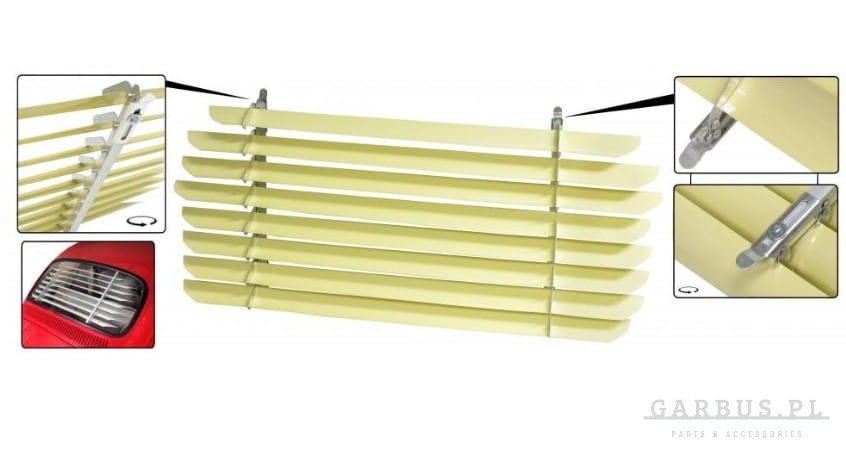 Budowa: żaluzje szyb tylnych i bocznych składają się z 2 aluminiowych podstaw, do których przymocowane zostały ruchome metalowe listwy. Sposób budowy umożliwia dostosowanie żaluzji do potrzeb użytkownika – od całkowicie zamkniętej do szeroko otwartej.